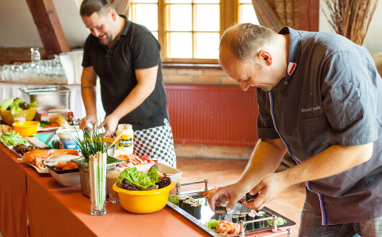 Zapraszamy na live cooking, czyli wyjątkowe warsztaty kulinarne, które wprowadzą uczestników w świat smaków, pasji i kulinarnej sztuki. Nasi doświadczeni szefowie kuchni nie tylko dzielą się swoją wiedzą, ale także angażują uczestników w proces przygotowywania pysznych dań. Wspólne gotowanie w swobodnej atmosferze, przy okazji zacieśniając więzi między uczestnikami, to doskonały sposób na wzbogacenie firmowego spotkania. Szefowie kuchni opowiedzą o tworzeniu dań, podzielą się tajnikami technik gotowania, zdradzą sekrety przypraw i składników, a także wzbogacą pokaz ciekawymi anegdotami. Będą także zachęcać uczestników do aktywnego udziału, by na koniec wspólnie cieszyć się wyśmienitym posiłkiem, który sami przygotowali. Warsztaty mogą poprowadzić znakomici i doświadczeni kucharze, którzy na co dzień zajmują się tworzeniem wykwintnych dań, ale potrafią także dopasować program do oczekiwań i potrzeb każdej grupy.